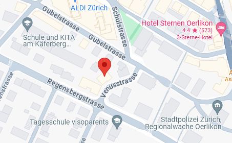 Unsere Praxis befindet sich in der Gesundheitspraxis-Gemeinschaft, 7 Min. Fussweg von Bahnhof in Zürich-Oerlikon oder Tramhaltestelle Sternen Oerlikon.